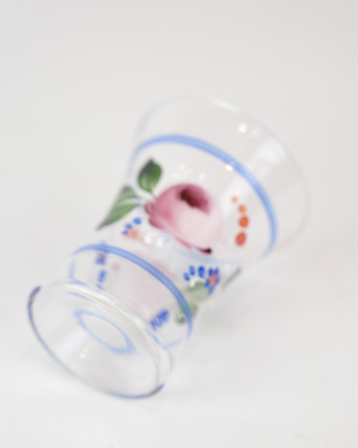 A pair of glass vases with hand-painted floral decoration from around the 1930s.