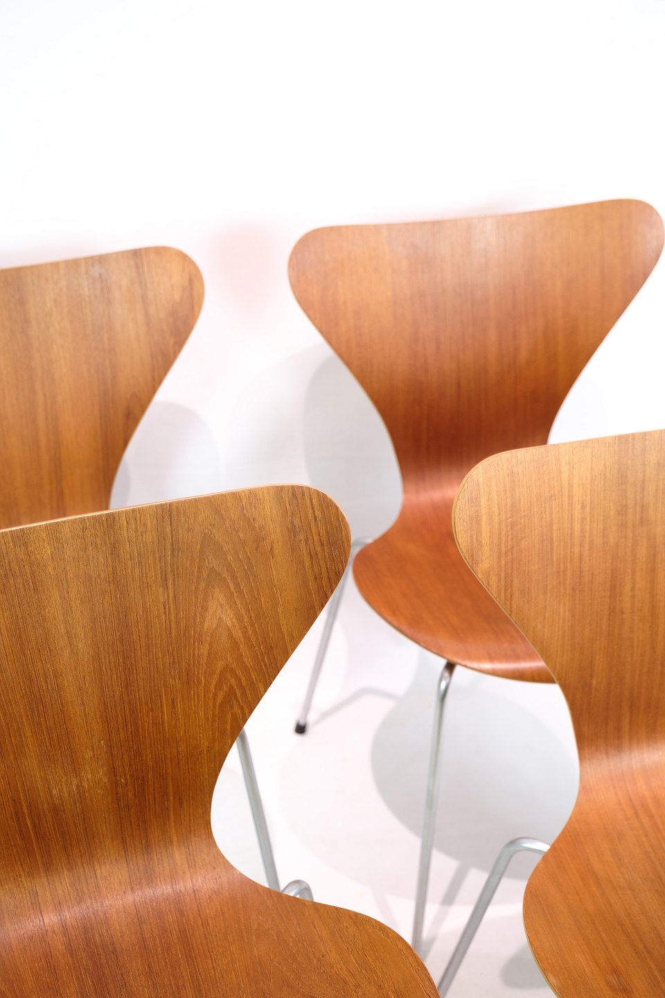 Sæt af 4 Syver Stole - Teaktræ - Arne Jacobsen - Fritz Hansen - 1960