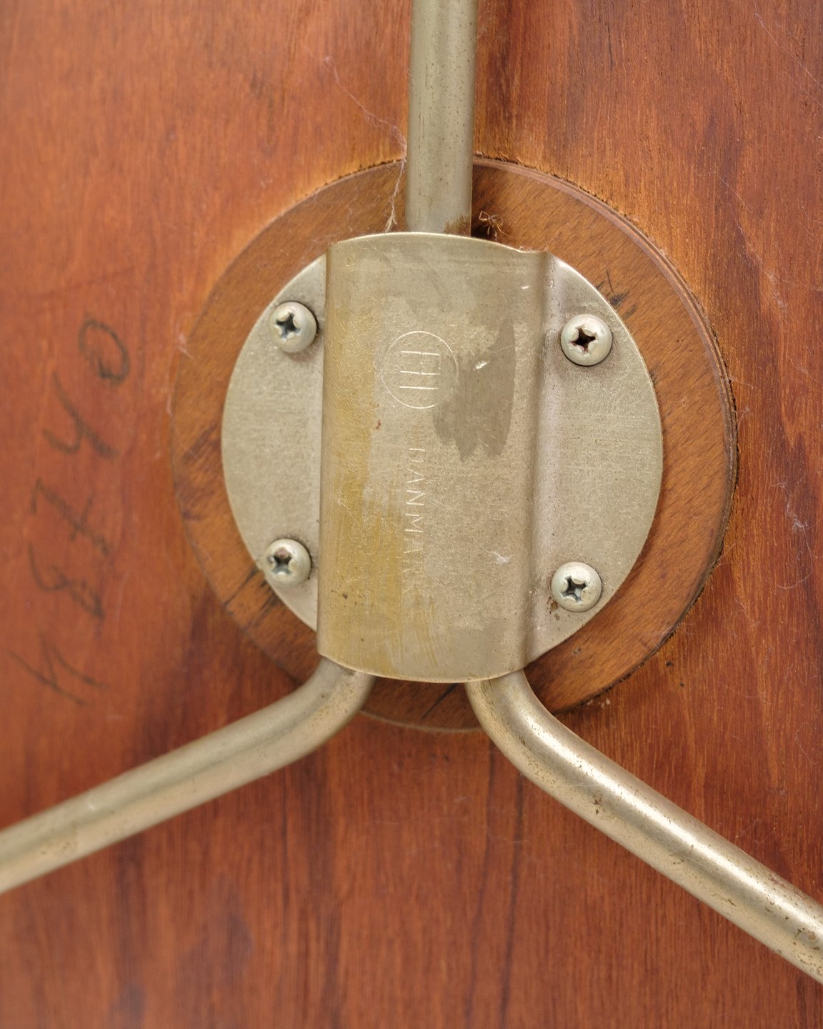 This chair is known as the Model 3100 Myren, designed by the iconic Danish architect and designer Arne Jacobsen for Fritz Hansen in 1950. The chair is famous for its distinctive, organically shaped seat that resembles the silhouette of an ant, giving it its popular nickname "The Ant". It is made of teak wood and represents a timeless example of Danish modernist design that is still valued by design enthusiasts and collectors around the world.