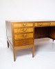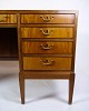 Dette fritstående skrivebord er et pragtstykke af møbelkunst, skabt af den anerkendte designer Fritz Henningsen tilbage i 1930'erne. Fremstillet af mahognitræ og udstyret med messinggreb, udstråler dette skrivebord en tidløs elegance og enestående kvalitet.