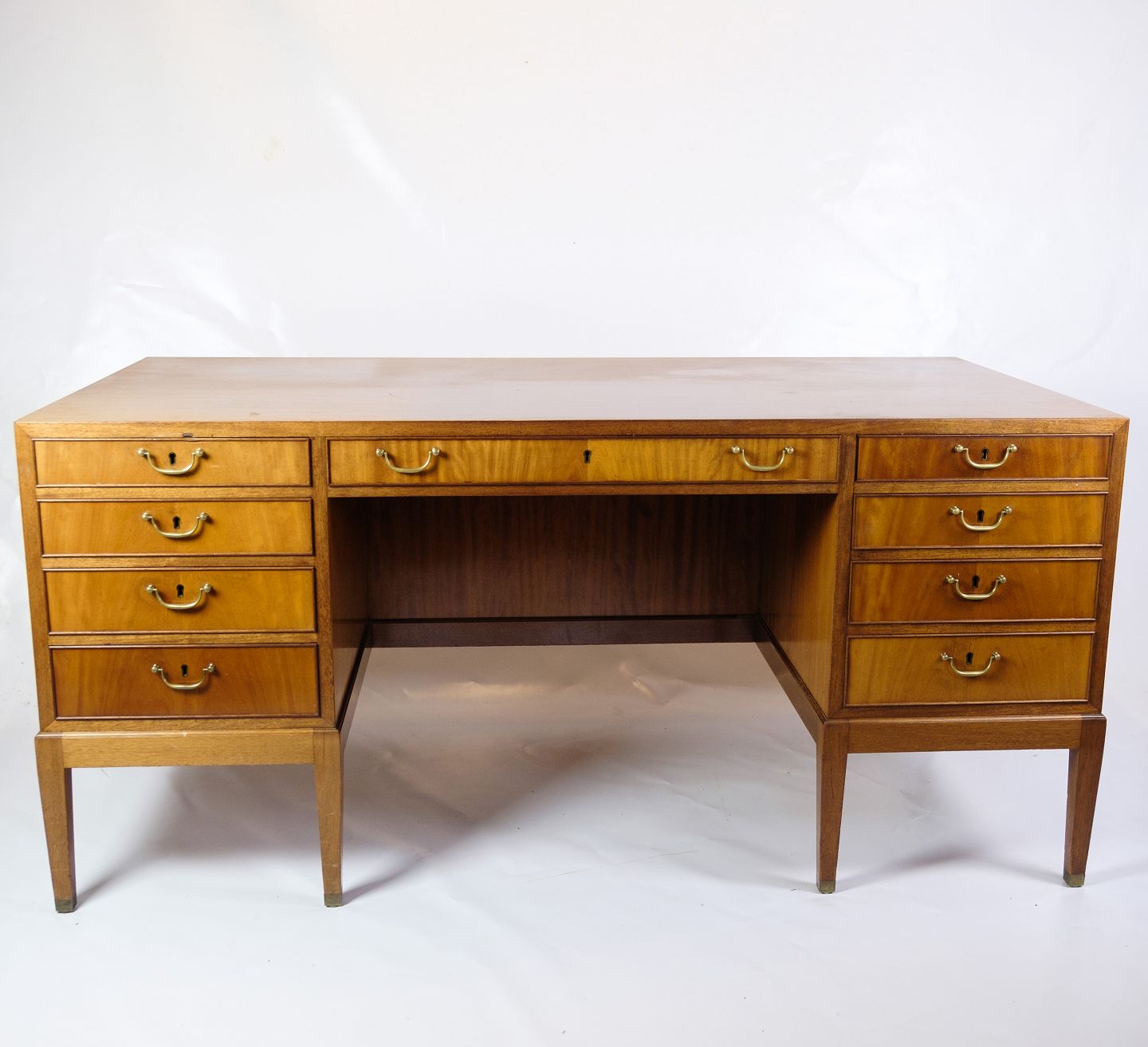 Fritstående Diplomat Skrivebord - Mahogni - Med Messing Greb - Fritz Henningsen - 1930