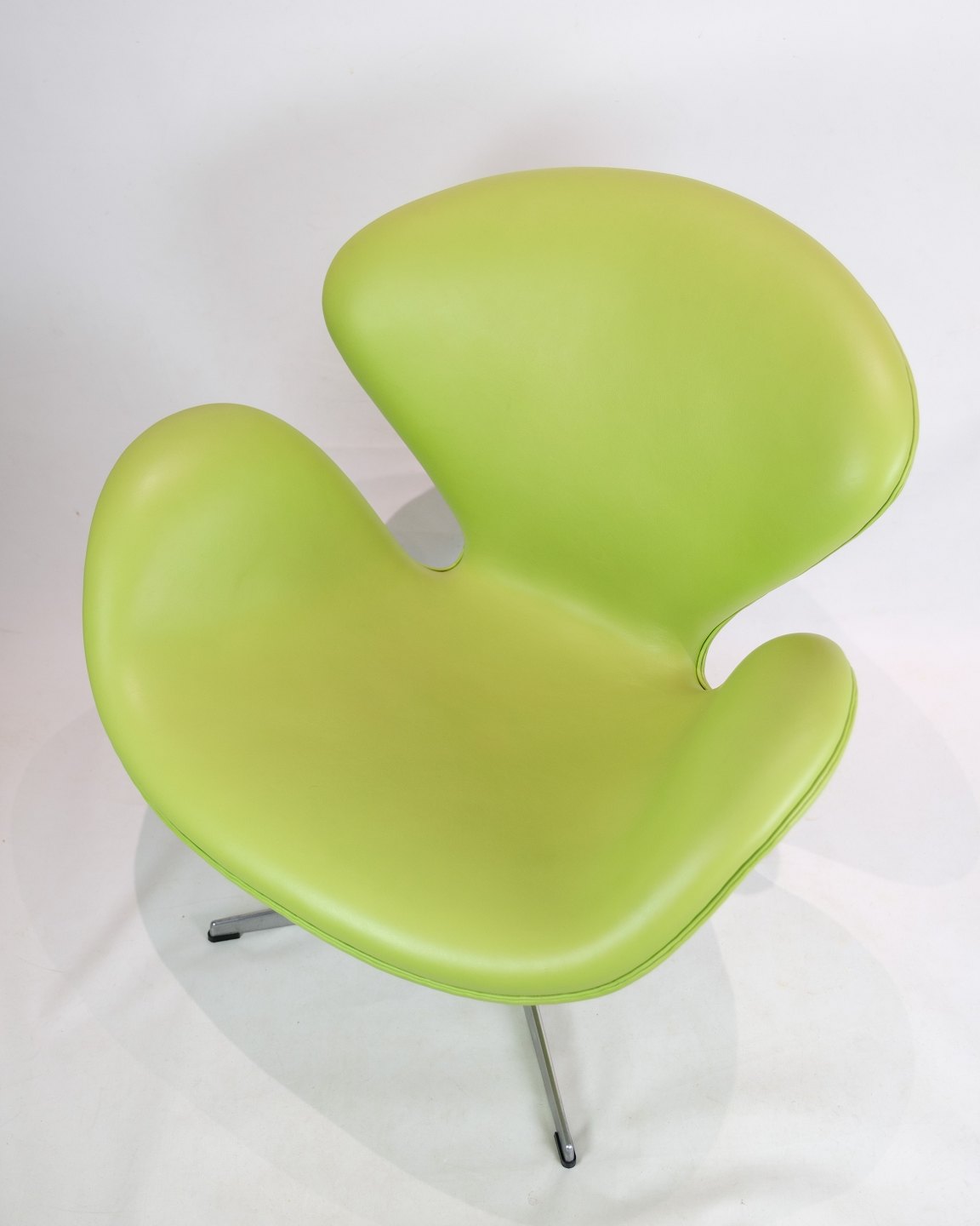 This special edition of the 2007 "Swan" presents a lively and bold choice of lime green leather that adds a freshness to any decor. Arne Jacobsen's vision of creating furniture that is both beautiful and comfortable is fully realized in this chair.