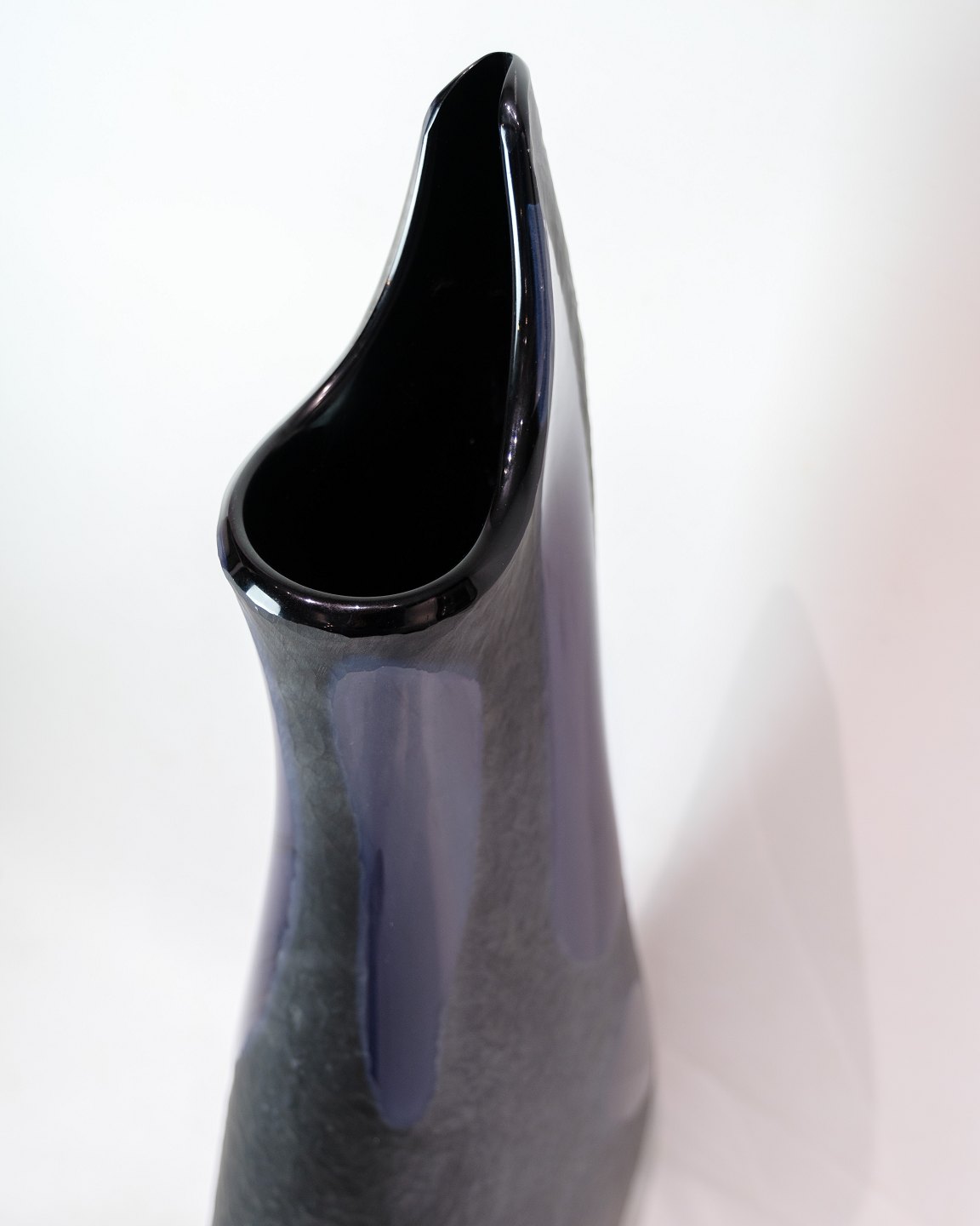 Unique vase designed by Elio Raffaeli in 2018 at Murano, known for his glass works. The vase, which is in dark purple, shows Raffaeli's masterful ability to work with colors and shapes in glass, making it a unique collector's item.