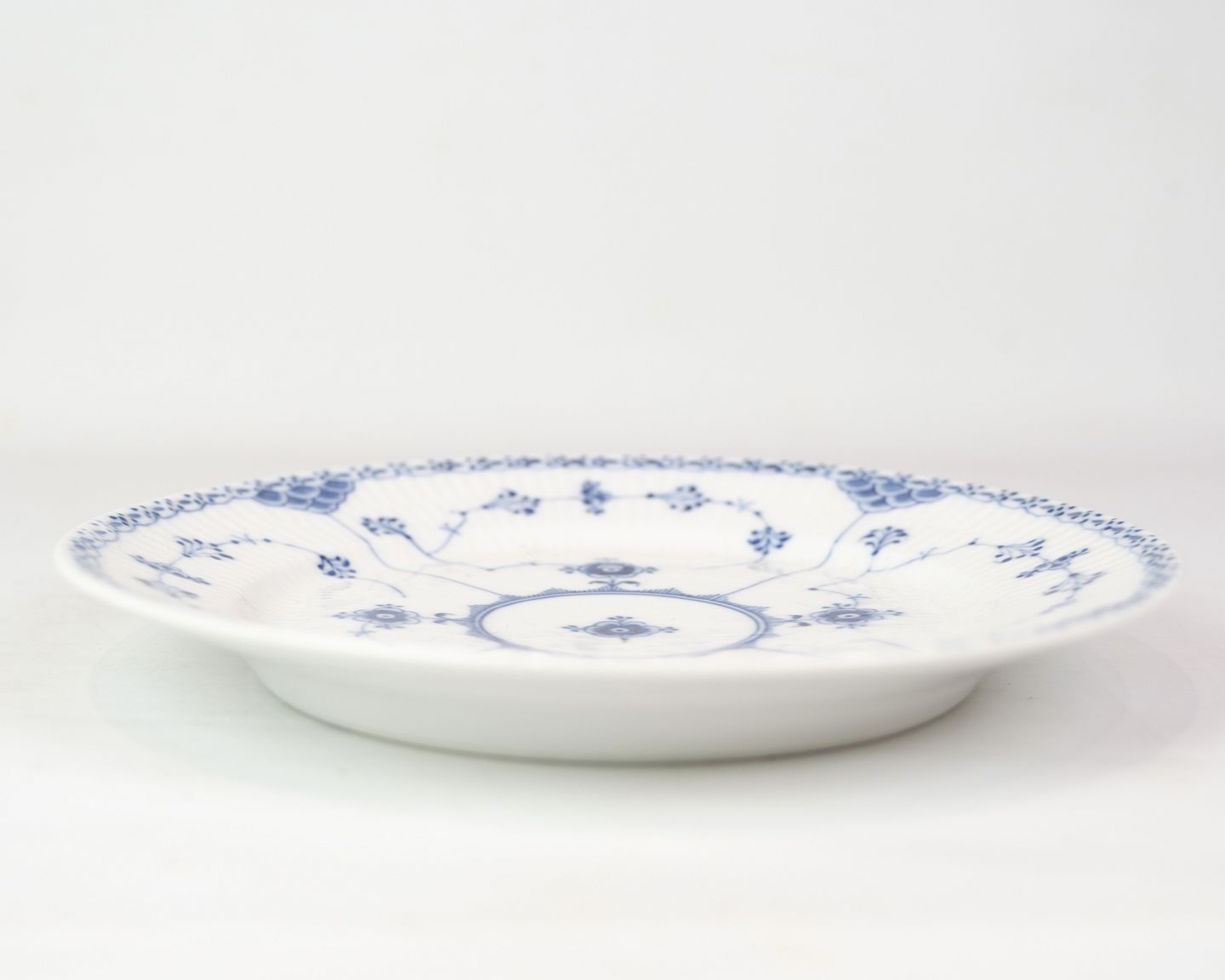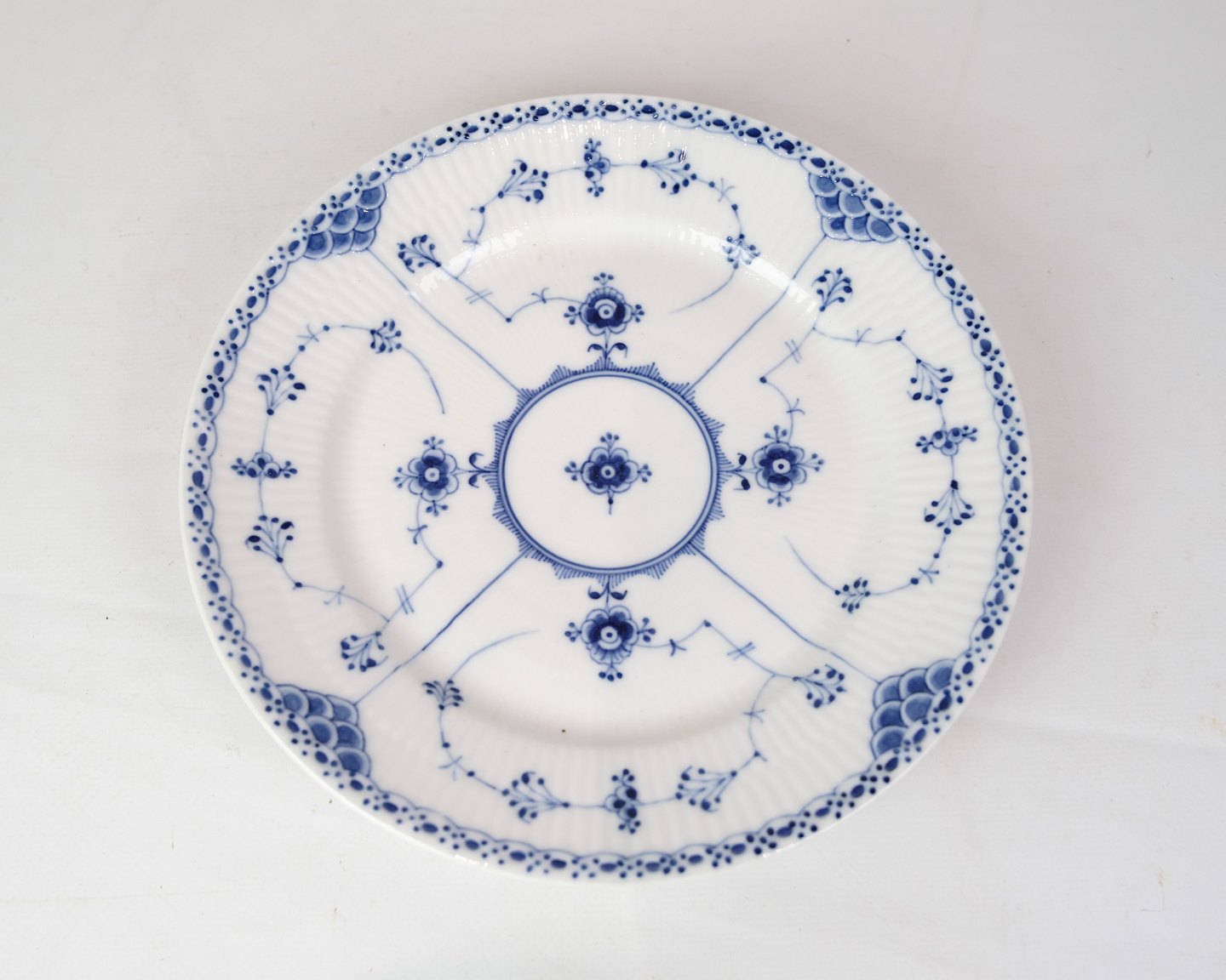 Lunch plate marked 1/578 from Royal Copenhagen. Made of porcelain with blue-fluted half-lace design, plate is hand-painted in blue decoration.