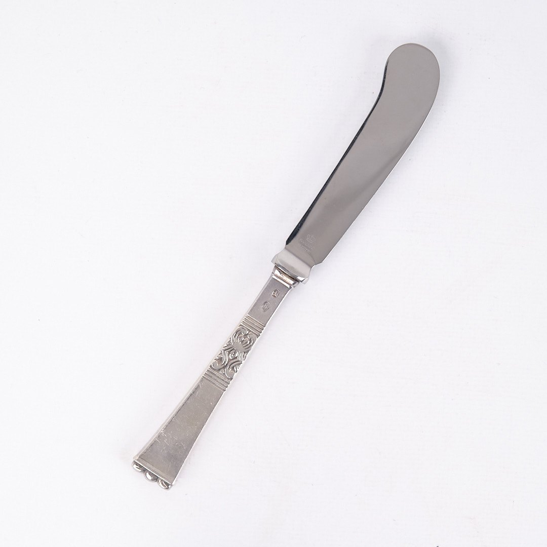 Poul Frigast butter knife in royal pattern. Silver 830s, 1930s. Length 16.5 cm. Classic Danish silverwork.