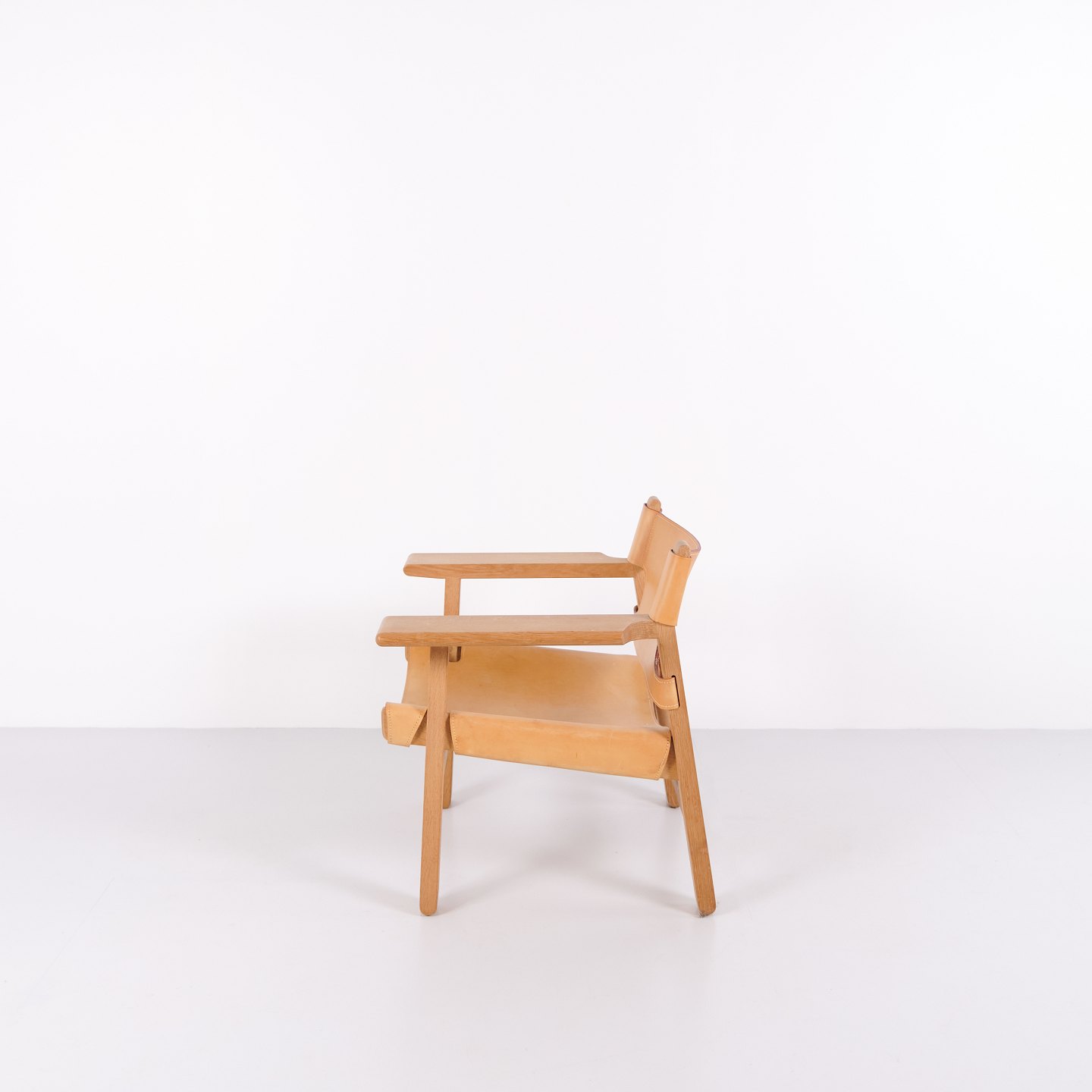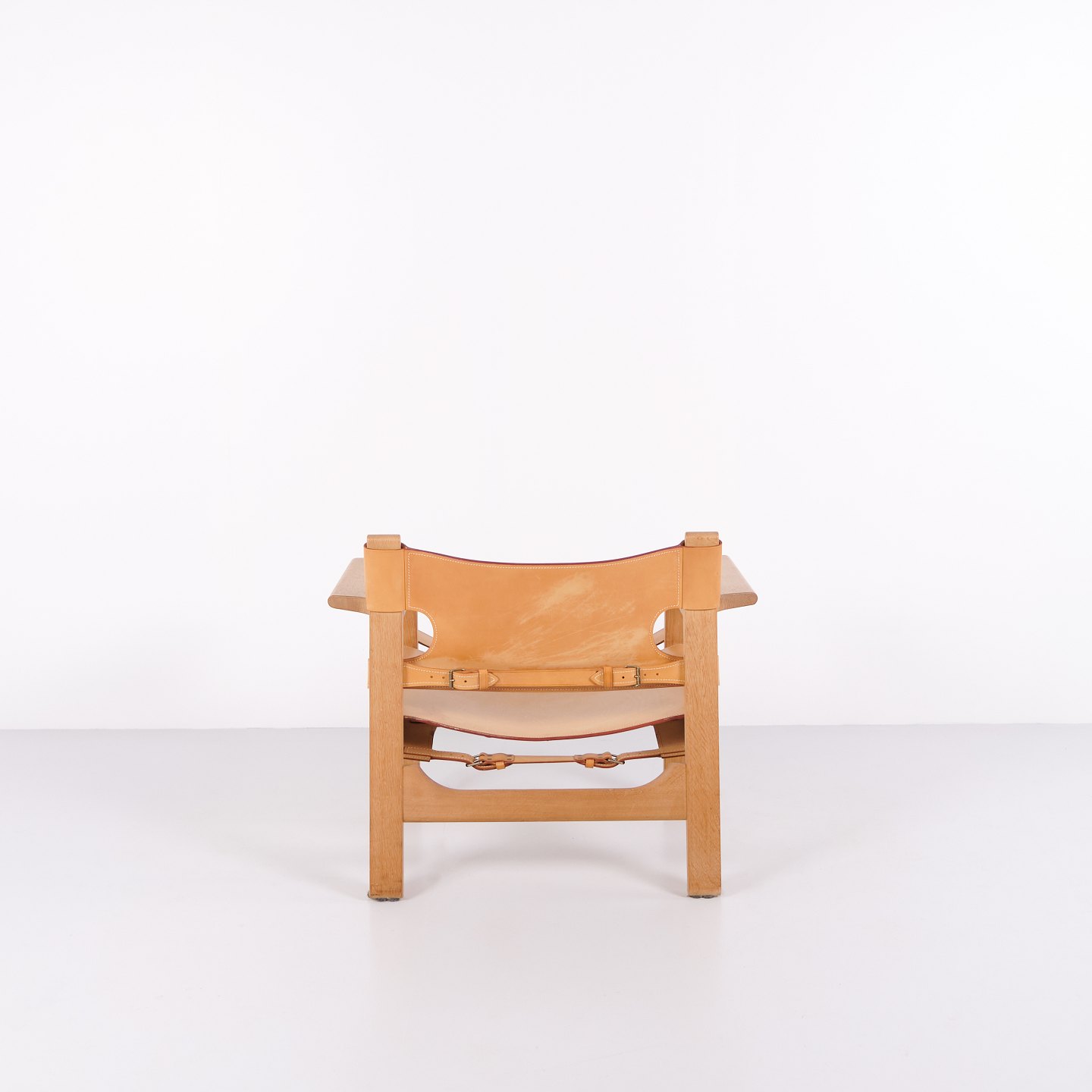 Børge Mogensen Der Spanische Stuhl Modell BM2226 aus natürlich patiniertem Kernleder aus den 1960er Jahren. Klassische dänische Designikone mit robustem Ausdruck.