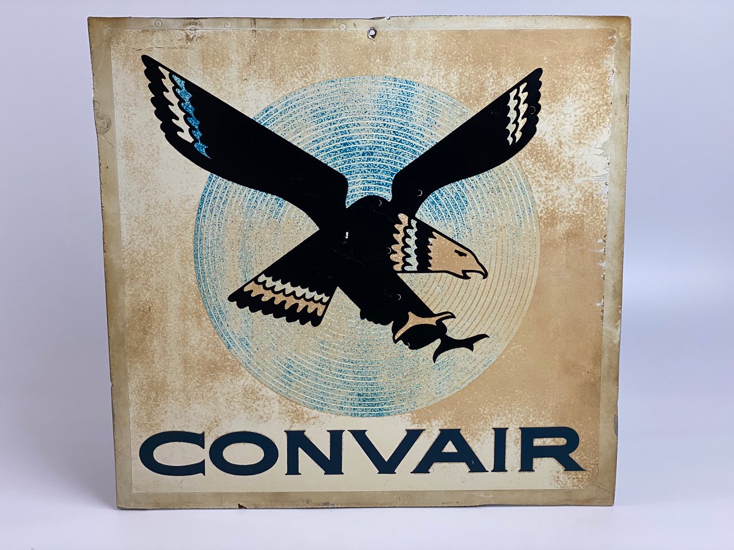 Der er tale om et "metalskilt" fra en del af et fly, som bærer CONVAIRs logo, som viser en flyvende sort ørn med beige og blå detaljer. Ørnen er på vej til at lande og ses på baggrund af en cirkel. Under billedet af ørnen står der "CONVAIR" i versaler. "Skiltet" er råt skåret og har et hjemmelavet hul til ophæng i toppen.