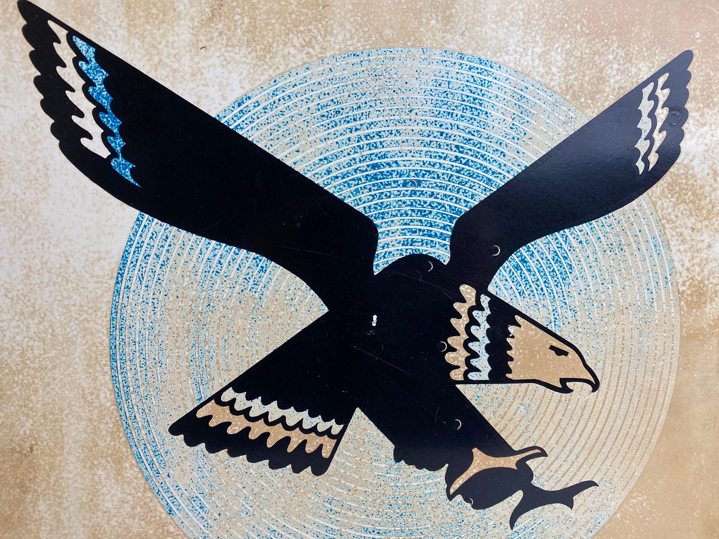 Metal-del fra fly - nu skilt - med logo af ørn fra det amerikanske CONVAIR, som både har lavet fly og dele til raketter - midten af det 20. århundrede