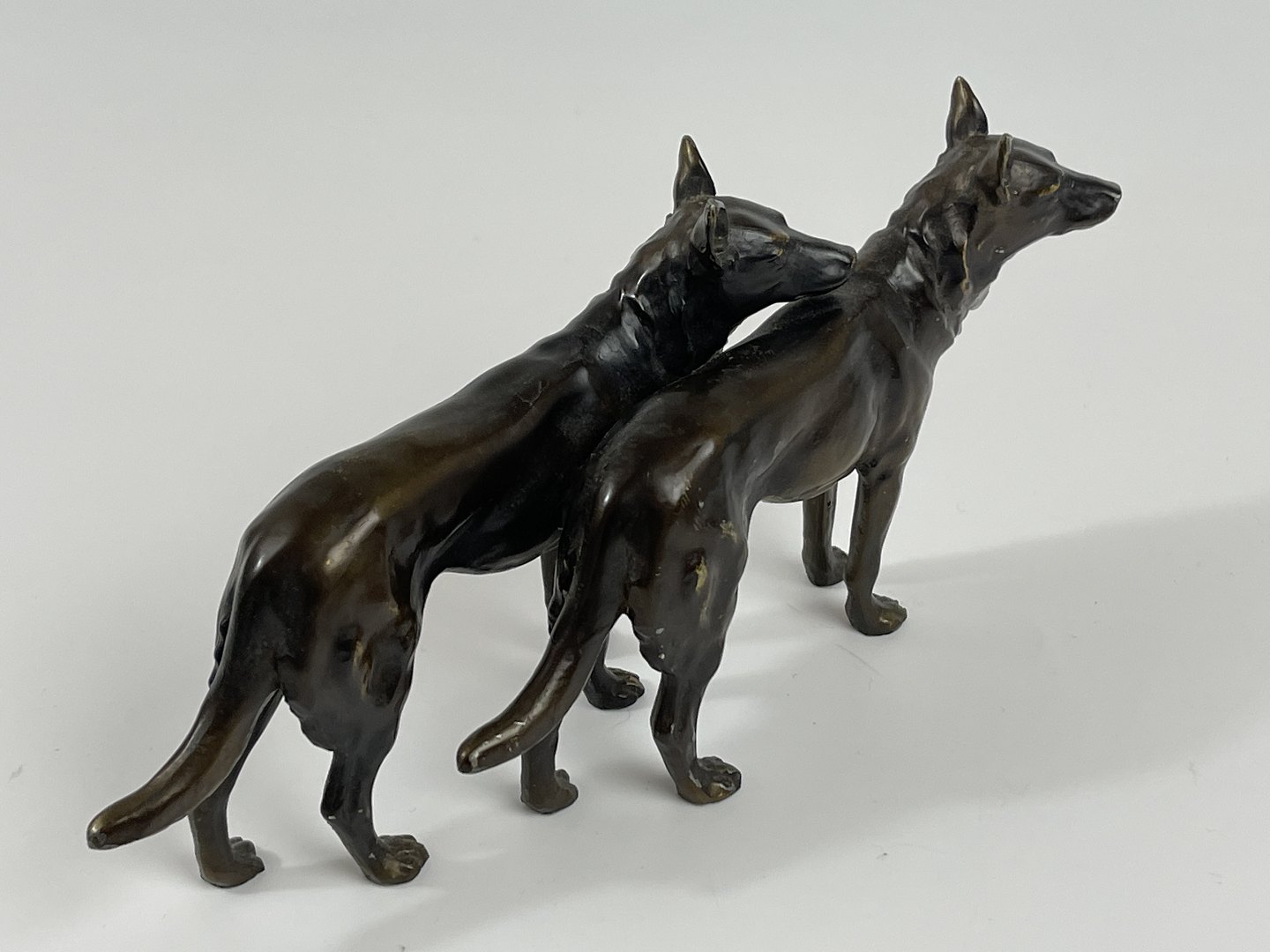 Vægt - figur af par schæferhunde af spelt / metal: Cirka 1037 gram.