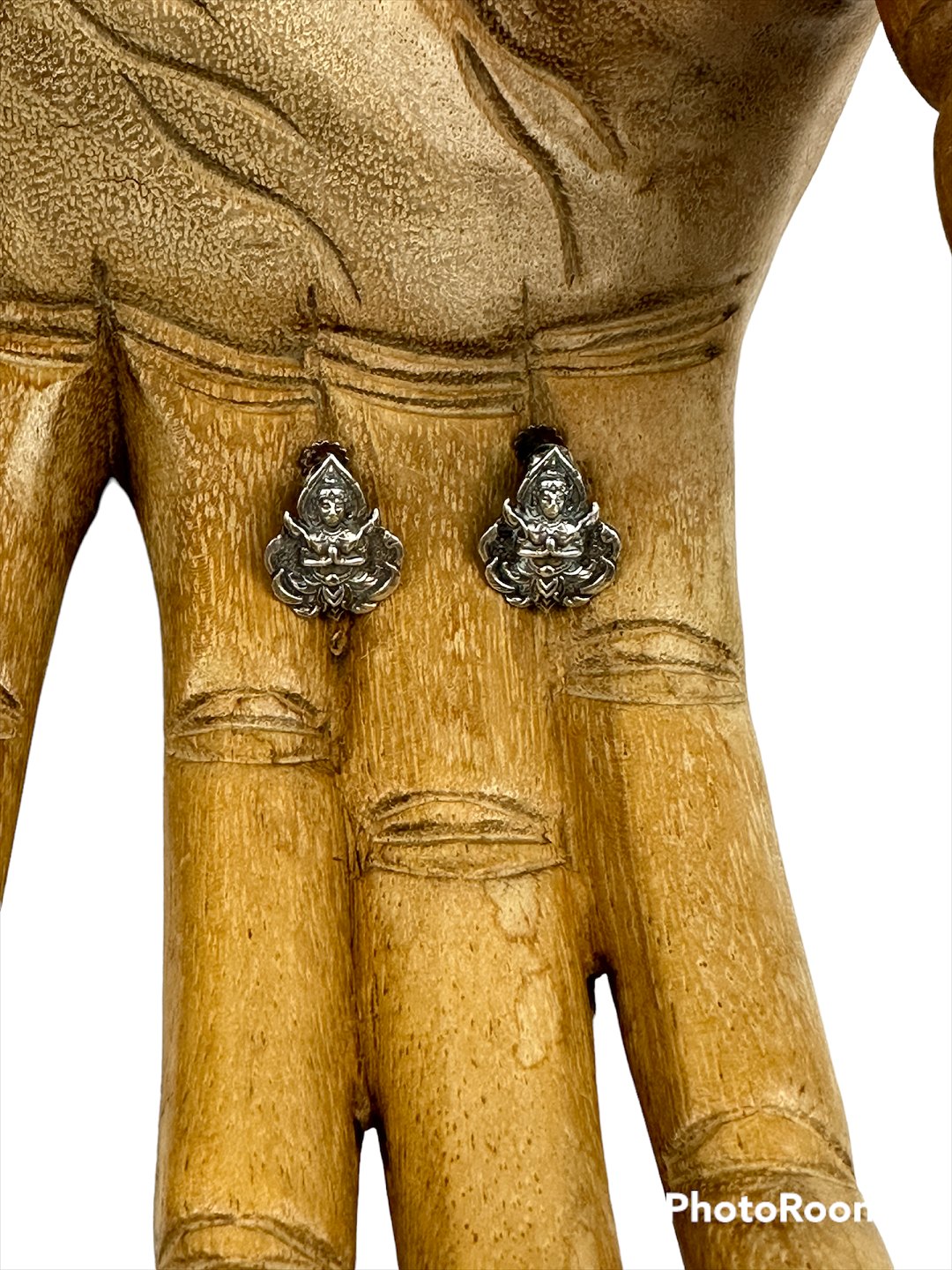 Par Buddha øreringe i sterling sølv fra Thailand (Siam), ca. 1930'erne.