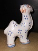 Lauritz Hjorth fabeldyr i form af dromedar. Hvid med plettet dekoration. Mindre glasurmangel på venstre bagben (se foto). Fabriksmærket på bunden. Ingen reparationer. H. 8 cm.