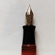 Koralrød Big Ben nr. 25 fyldepen. "Push button filler" Fremstår i god stand uden skader eller reparationer. Alle dele originale Big Ben inclusive en 14 karat guldspids. L. 13 cm (5.11 tommer).
