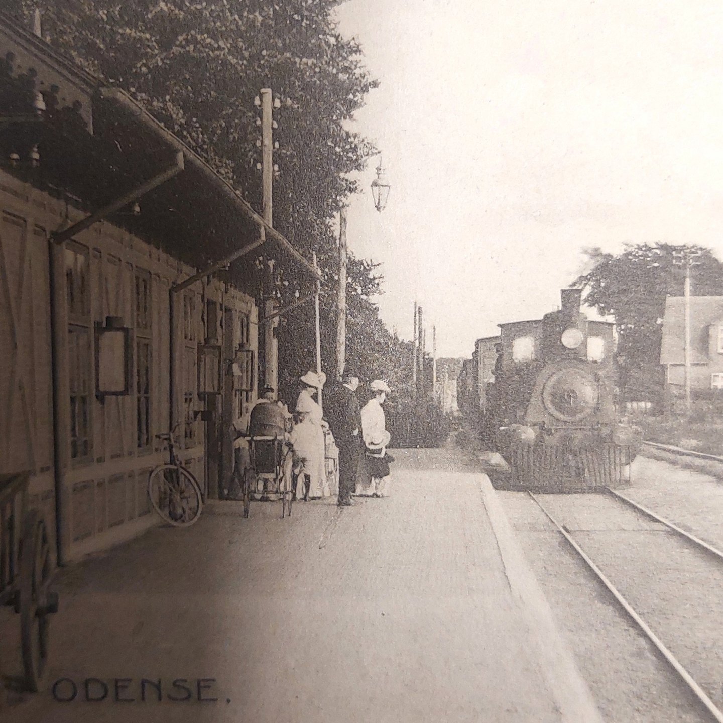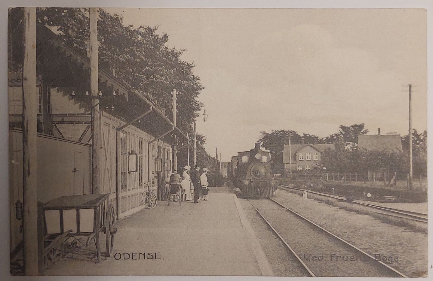 Postkort: Motiv med tog ved Fruens Bøge, Odense. Annulleret i 1908.i god stand