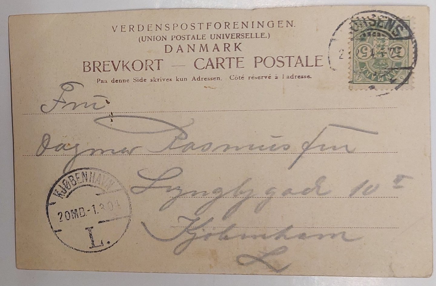 Postkort: Motiv fra Graven I Horsens. Annulleret HORSENS i 1904. Brugsspor i hjørnerne efter at have siddet i album i mange år, samt "skæv" klipning øverst.