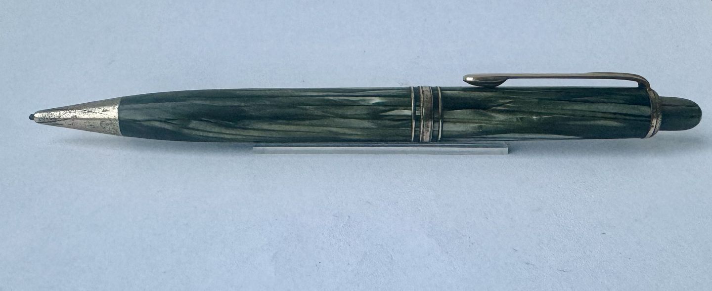 Grønstribet Montblanc nr. 172 Pix skrueblyant / stiftblyant / pencil. fremstillet i Tyskland i 1950'erne. I fin stand. Ingen skader eller reparationer. 13 cm lang.