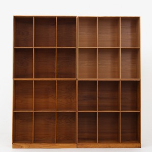 Sæt på fire bogkasser i patineret, massiv mahogni på to sokler. Dette er et modelfoto og varen kan fås i forskellige variationer. Kontakt os venligst for mere information omkring lagerstatus. Kontakt os vedr. lagerstatus Pæn standVarenummer. 1510034