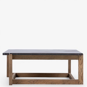 'Studio' kvadratisk sofabord i massiv, olieret stel af eg med sort marmor.