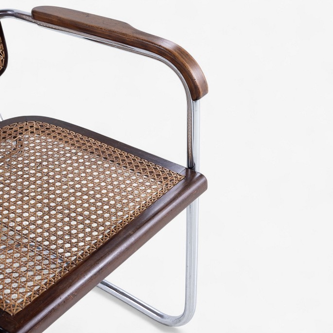 FH 6107 - Set of four armchairs in steel, stained beech and original French wicker. Designed in 1934.