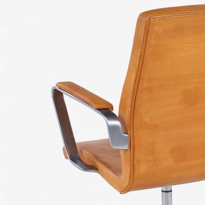 Lavrygget 'Oxford'-kontorstol i patineret naturlæder på stel af stål.