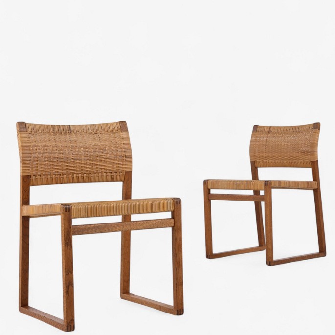 BM 61 - Set of 4 dining chairs in oak and patinated wicker.