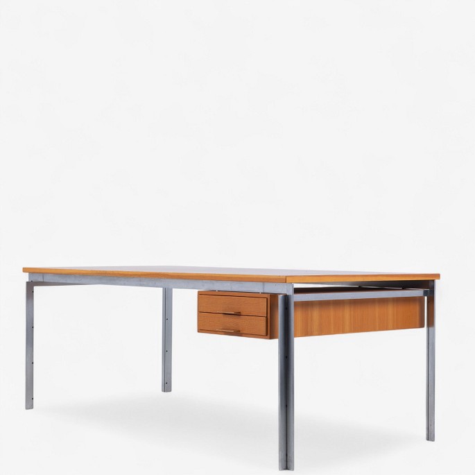 PK 55 - Work table/desk with top and drawer module in Oregon pine and steel frame. From 1985. Manufacturer's mark.