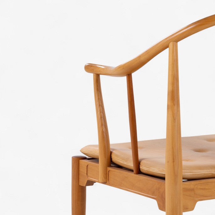 FH 4283 - Kinastol i kirsebær med hynde i patineret naturlæder. Mærket fra producent.
