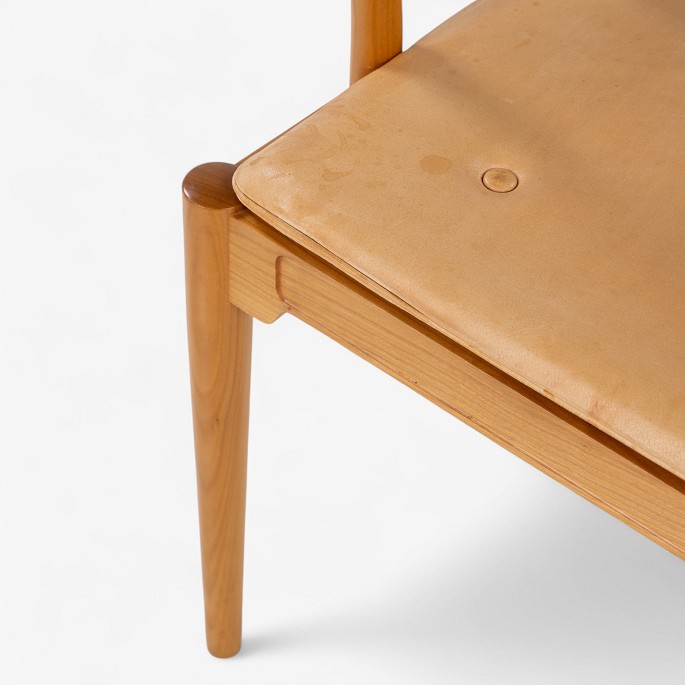 FH 4283 - Chinese chair in cherry with cushion in patinated natural leather. Manufacturer's mark.