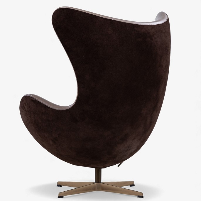 AJ 3316 - 'The Egg' armchair with stool in original dark brown Elegance leather and brown suede on a bronze frame. Anniversary model from 2008. Number 489/999.