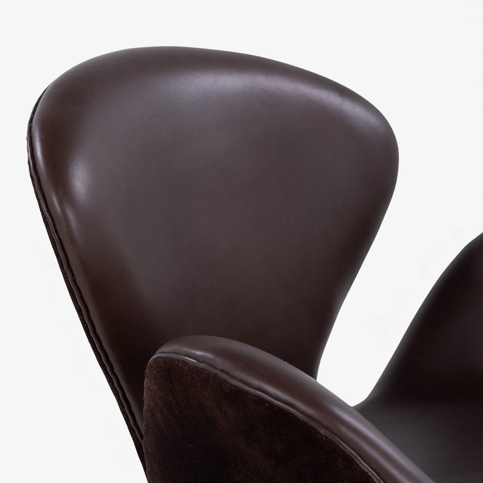 AJ 3320 - 'Swan' armchair in dark brown Elegance leather and brown suede on a bronze base.