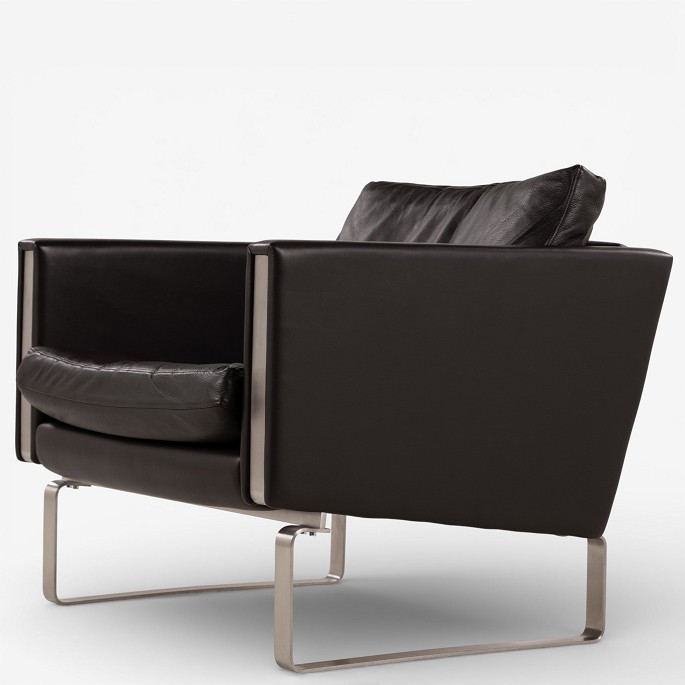 CH 101 - Armchair in dark brown, patinated semi-aniline leather with steel frame. Manufacturer's mark.