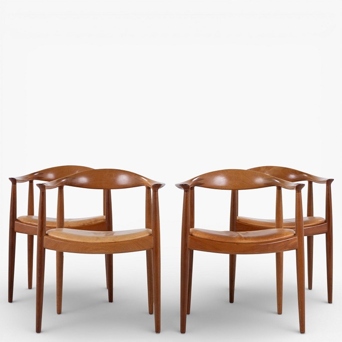 JH 503 - 'The Chair' armchair in mahogany with seat in patinated natural leather. Manufacturer's mark.