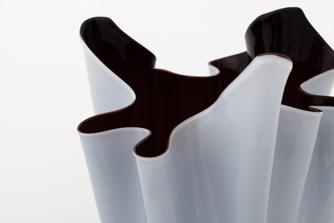 Fazzoletto vase i hvidt og lilla glas. Model: Handkerchief.