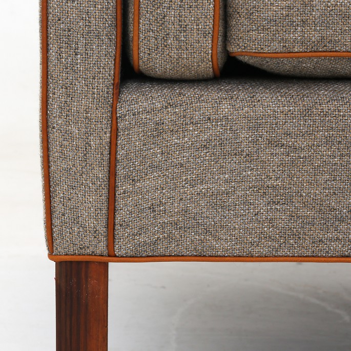 BM 2213 - 3-seater sofa in new textile (Hallingdal 65, colour code 227) with piping in aniline leather (Klassik Cognac). KLASSIK offers the sofa in textile and leather of your choice. Please contact us for more information.
