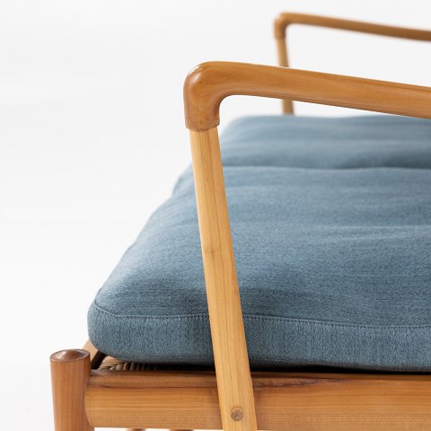 PJ 149/2 - 2 pers. 'Colonial' sofa i kirsebær, sædebund af sjeneflet og originale hynder af blå uld. Mærket fra producent.