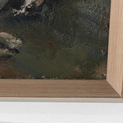 Olie på lærred. 'Gris' fra 1974 i bemalet ramme. Signeret.