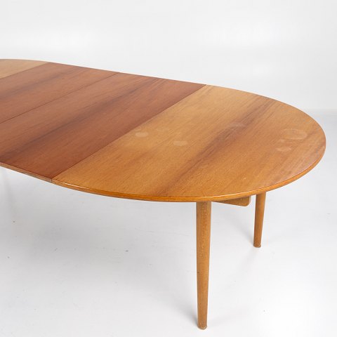 AT 332 - Ovalt spisebord i mahogni og stel af bøg med to tillægsplader. Tillægsplader måler i alt 110 cm extra.