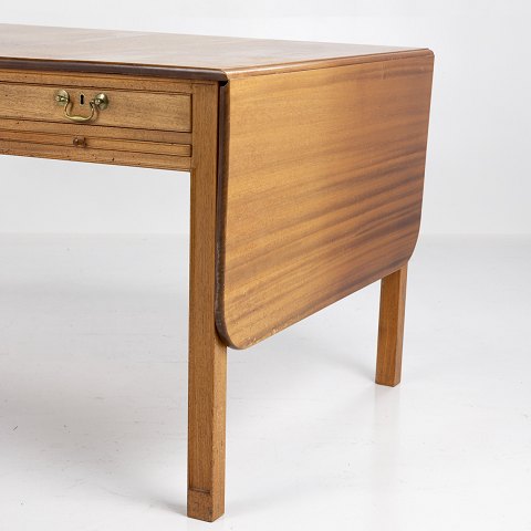 Model 4113 - Skrivebord i massiv mahogni med klapper, udtræksplader og skuffer med håndtag af messing. Udtræksplader tilføjer 92 cm ekstra.