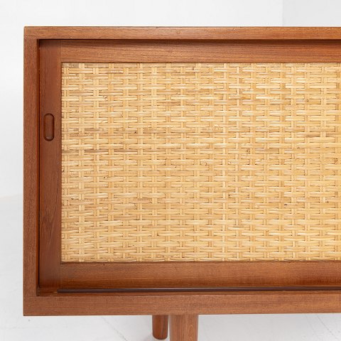 RY 26 - Sideboard in teak with decor and two sliding doors in patinated cane.
