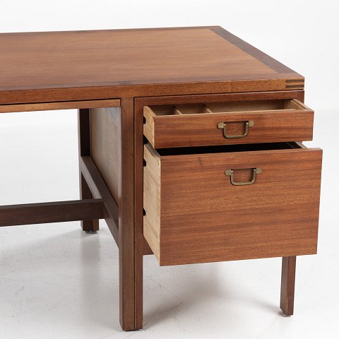BM 66 - Desk in mahogany with two drawer modules with drawers and brass handles.