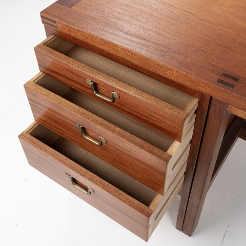 BM 66 - Skrivebord i mahogni med to skuffemoduler med skuffer og messinghåndtag.