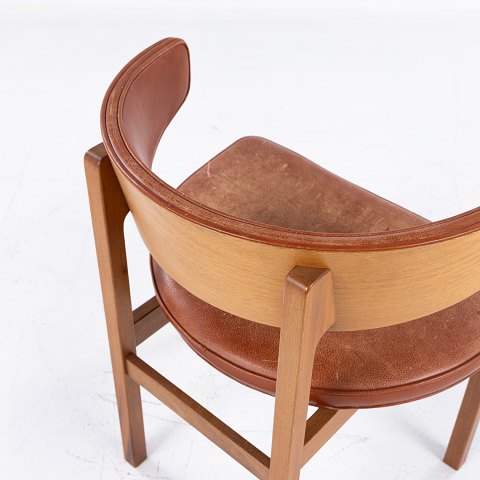 BM 3245 - Armchair in mahogany and original patinated reddish brown leather.