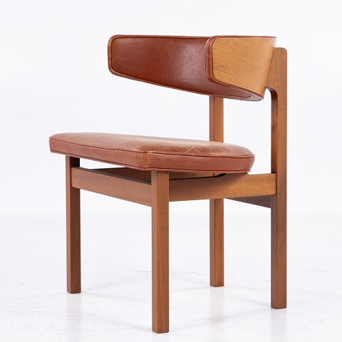 BM 3245 - Karmstol i mahogni og originalt, patineret rødbrunt læder.