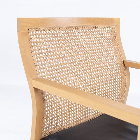 7512 - Armstol i ask m. ryg i fransk rørflet og sæde i sort læder.