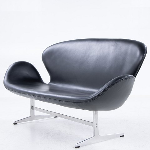 AJ 3321 - 'Svanesofa' i sort læder m. stel i stål.