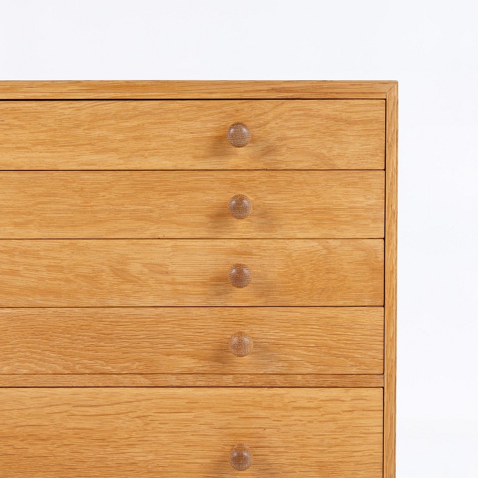 Drawing cabinet in oiled oak with eight drawers. Manufacturer's label.