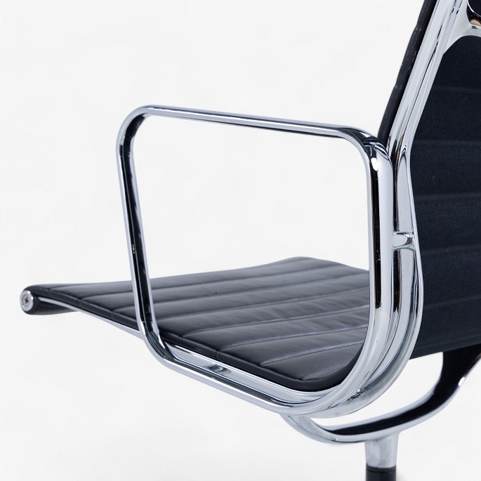 EA 107 - Kontorstol i sort læder og stel i stål.