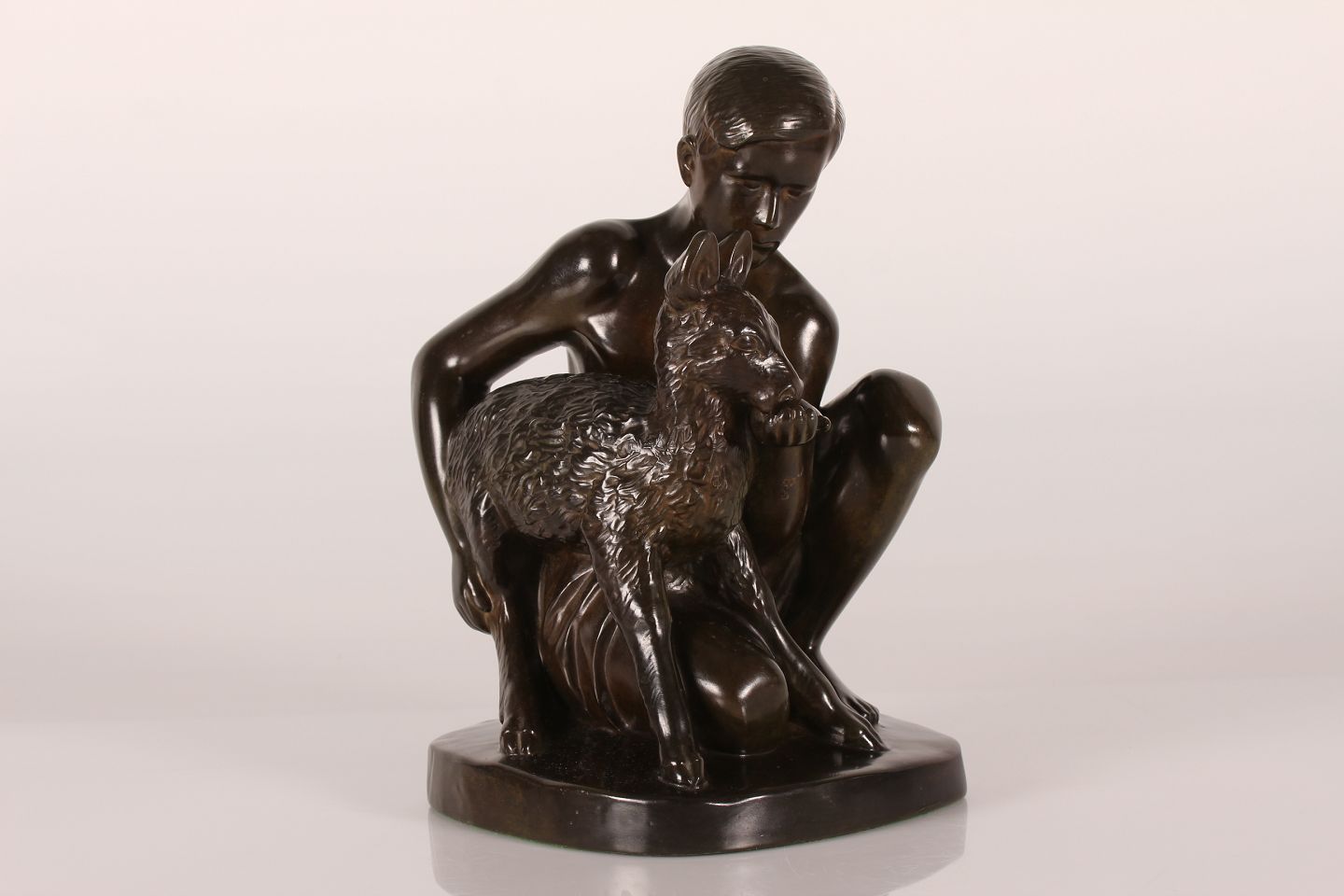 Just Andersen (1884-1943) Shapherd feed the Lamb Dessin no 2313 made of disco metal with patina Height 23 cm Very good vintage condition with beautifull patina - see image of small spot