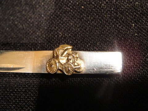 Tie pin with small gilded car.