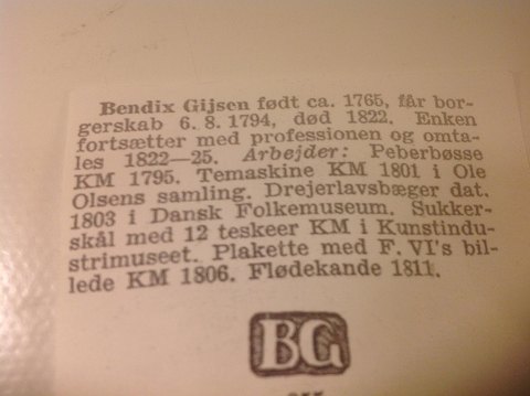 Silver master: Bendix Gijsen Born. 6.8.1794 Death: 1822