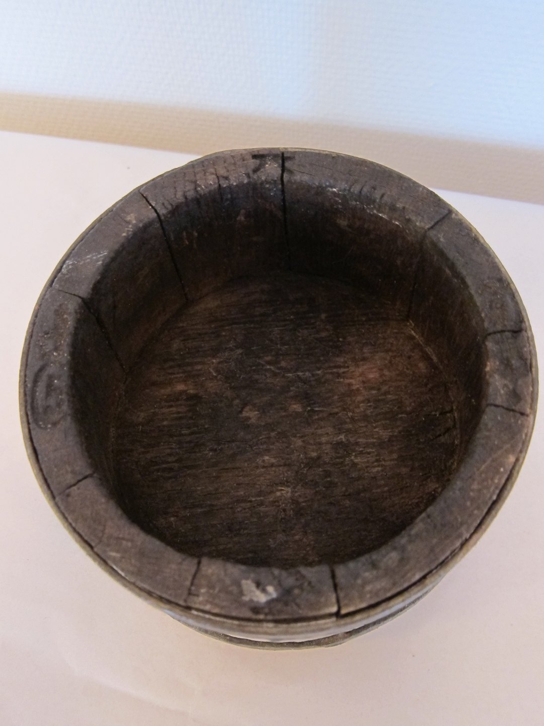 Bushel (1/16) measurement made of wood, from 1906 With bands made of iron, With stamp D top: 15,5cm, D bottom: 17,5cm Articleno.: 411171